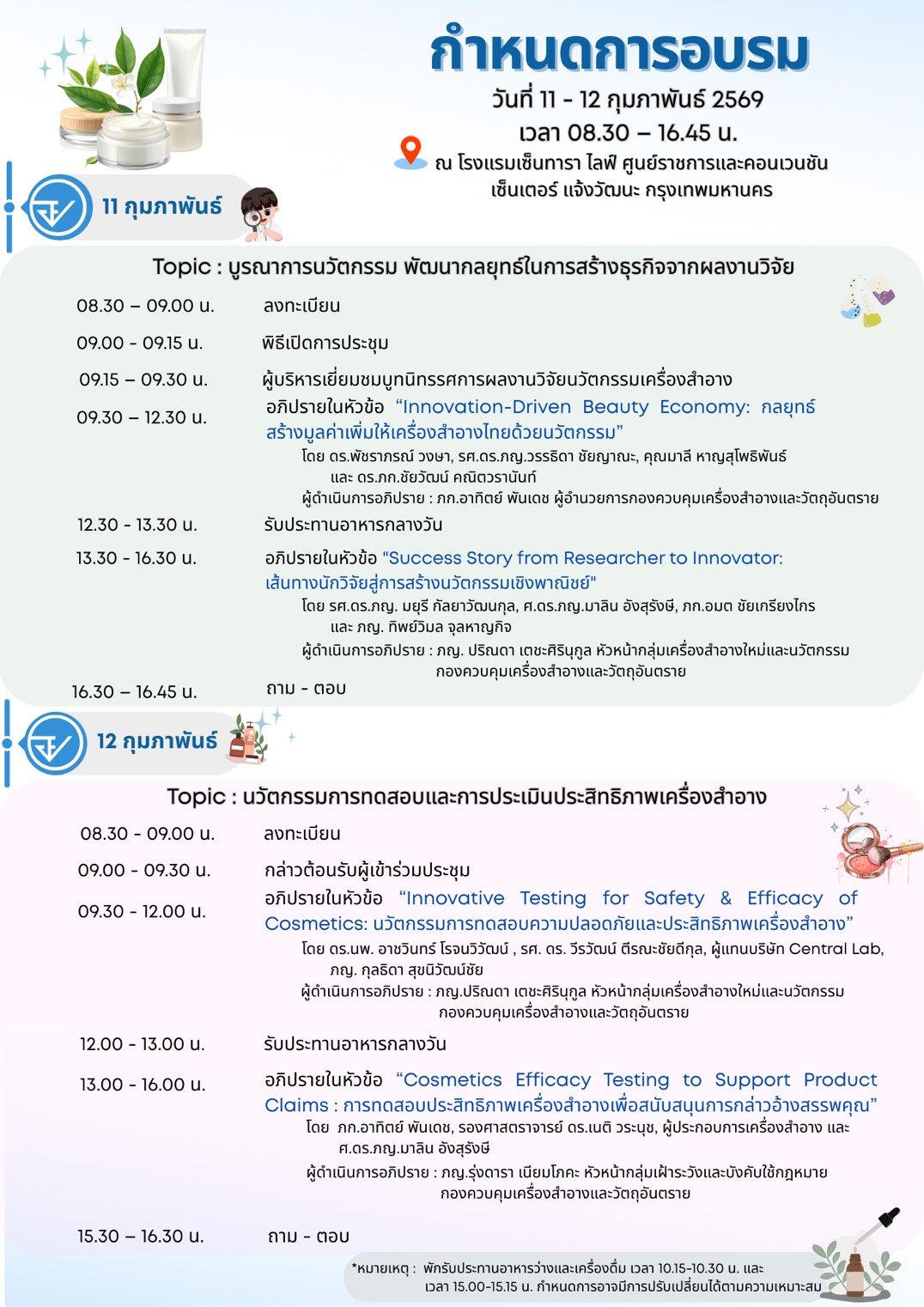 ✅DAY 2 : วันพฤหัสบดี ที่ 12 กุมภาพันธ์ 2569 Topic : นวัตกรรมการทดสอบและการประเมินประสิทธิภาพเครื่องสำอาง